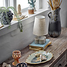 La lámpara de mesa Bloomingville Foglio de la Colección Creativa tiene una base de piedra artificial con una estructura suave y una pantalla clásica de tela beige. Una lámpara sencilla de aspecto natural. Dimensiones: Ø16 x 28,5 cm.